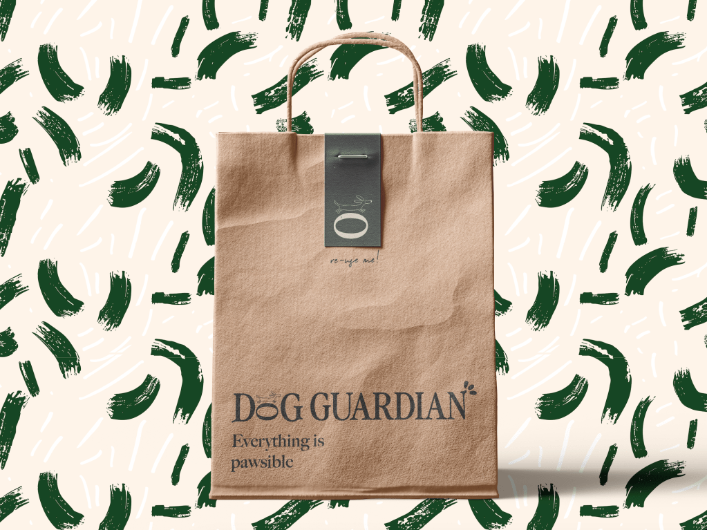 Their brand exudes warmth, reliability, and a touch of enthusiasm. With handcrafted elements, warm colors, and modern typography, DogGuardian aims for a timeless, distinctive look. Key elements like natural ingredients, handmade food, and harnesses highlight their dedication to eco-friendliness and love for dogs. The textured typography in their logo adds depth, a playful nod to the muddy adventures all dog owners know too well!